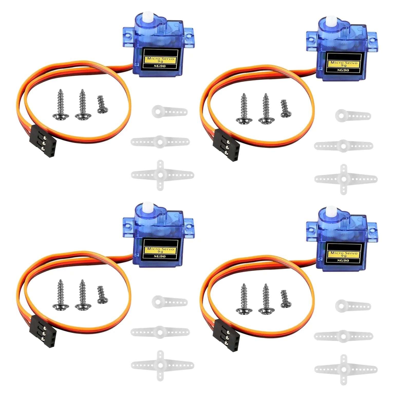 4Pcs SG90 Micro Servo Motor 180 Degree SG90 9G Gear Motor Control for Arduino Raspberry Pi RC Car Toy Robot Helicopter Airplane Controls Car Boat DIY